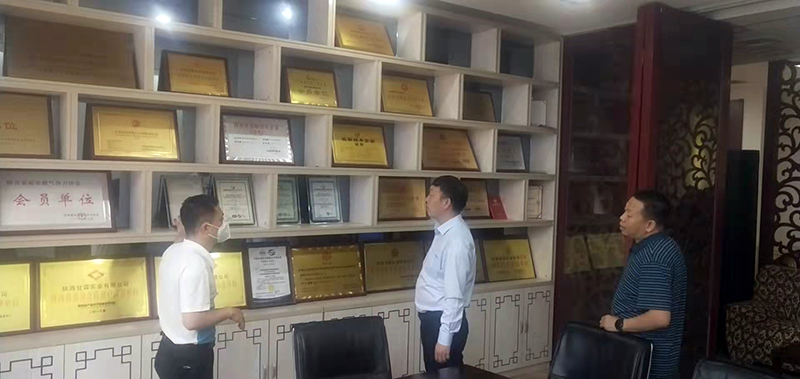 考察團(tuán)一行參觀了陜西甘霖實(shí)業(yè)的樣品展廳、實(shí)驗(yàn)室和榮譽(yù)墻,江局長詳細(xì)了解了公司產(chǎn)品類別、規(guī)格以及市場應(yīng)用,對(duì)公司歷史獲取的榮譽(yù)給予了充分肯定和贊許。隨后考察團(tuán)一行參觀了公司生產(chǎn)設(shè)備及車間,了解了產(chǎn)品生產(chǎn)的工藝流程。